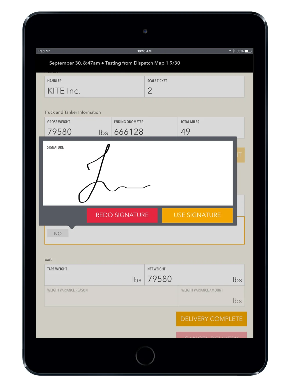 Elegant touch interface to make data entry fast and consistent, including signature signup of a route.